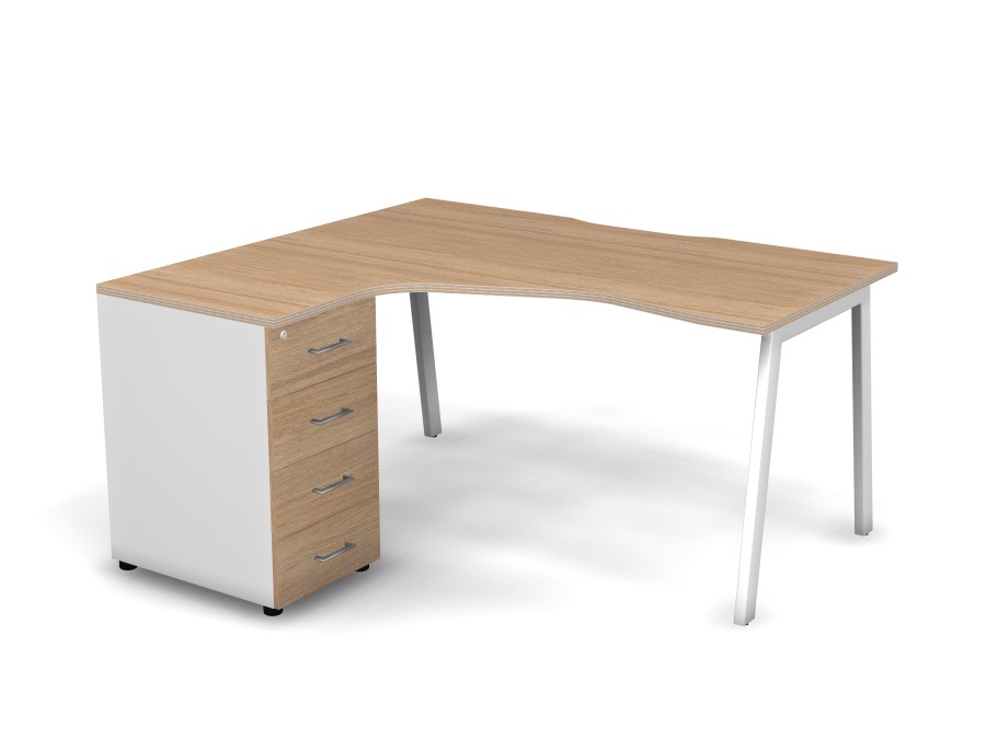 MATRIX 121S131-A Стол эгоном. с тумбой L, пров-ик вырезной (А-опоры) 1580х1380х775 Швейц-й вяз/Белый