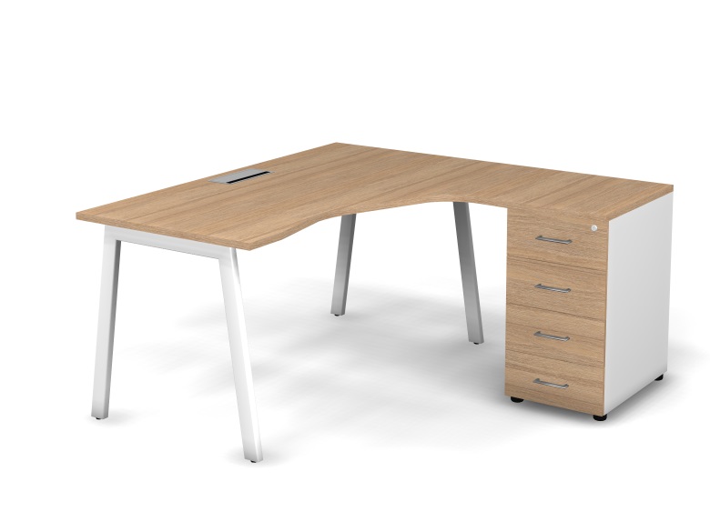 Стол эргономичный правый с тумбой Матрикс Нью (158x158x77,5) с простыми и правильными формами создает непринужденный офисный стиль и настраивает на эффективную командную работу. Стол оснащен проводником Merida (Дания), расположенным посередине столешницы, и A-образными металлическими опорами. Металлический каркас представляет собой конструкцию из опор с регулировкой высоты (+15 мм), соединённых одной металлической траверсой. Тумба Matrix New комплектуется центральным замком. Ручки металлические, покрытие – полированный хром.