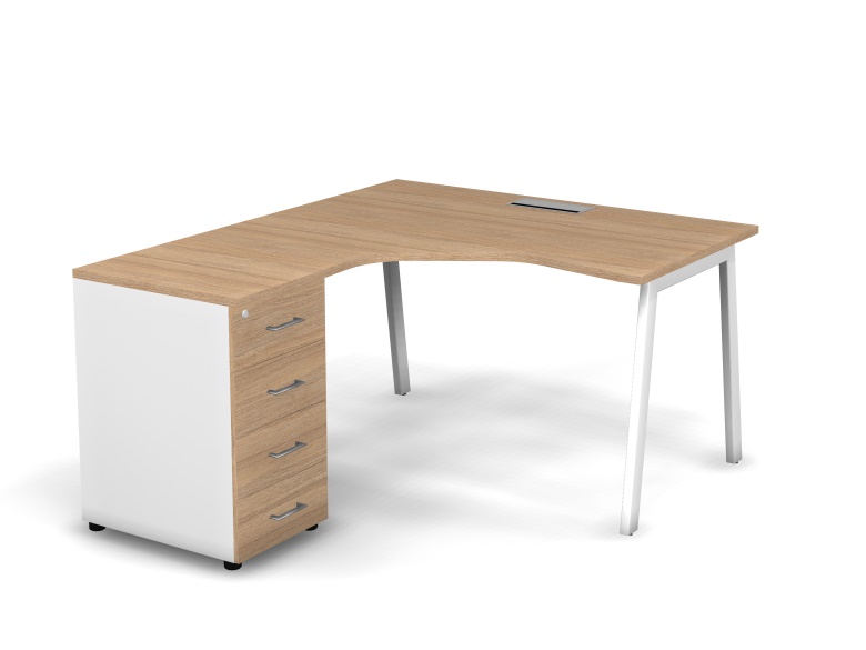 MATRIX 121S172-A Стол эгоном-й с тумбой L, пров-ик Merida (А-опоры) 1380х1580х775 Швейц-й вяз/Белый
