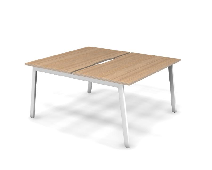 MATRIX 121S201-A Стол прямой двойной, пров-ик вырезной (А-опоры) 1380х1590х775 Швейцарский вяз/Белый