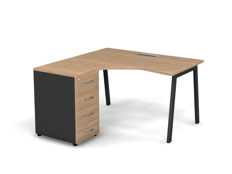 Стол эргономичный левый с тумбой Матрикс Нью (138x138x77,5) с простыми и правильными формами создает непринужденный офисный стиль и настраивает на эффективную командную работу. Стол оснащен проводником Merida (Дания), расположенным посередине столешницы, и A-образными металлическими опорами. Металлический каркас представляет собой конструкцию из опор с регулировкой высоты (+15 мм), соединённых одной металлической траверсой. Тумба Matrix New комплектуется центральным замком. Ручки металлические, покрытие – полированный хром.