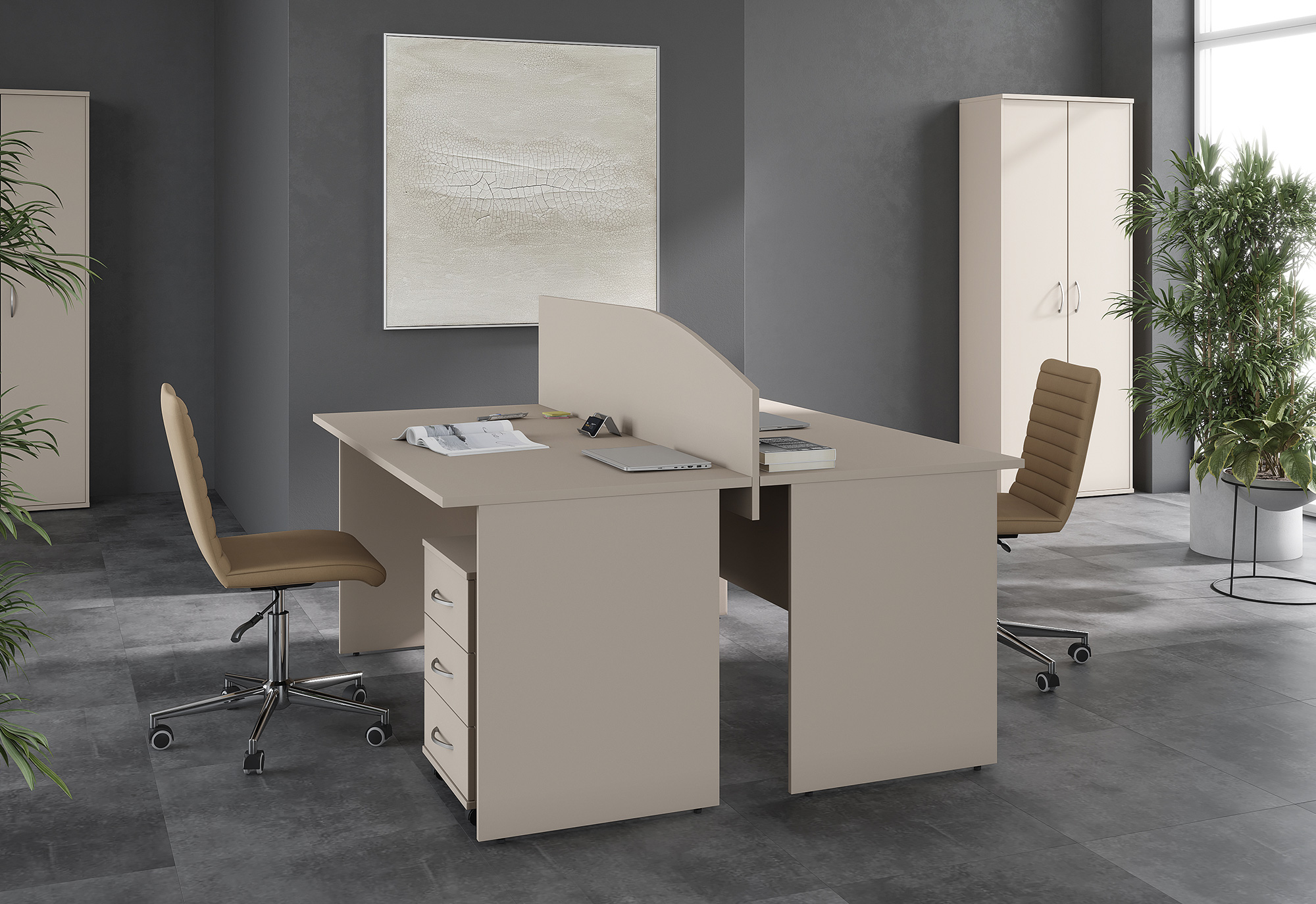 Регулируемые опоры столов и шкафов: металлические с пластиковым основанием, диапазон регулировок – до 15 мм.