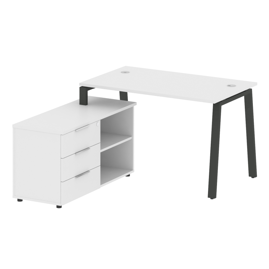 Metal System Р. ст. с тумбой на А-образном м/к БА.РС-СТС-2.2 (L) Белый/Антрацит металл 1300*1520*750