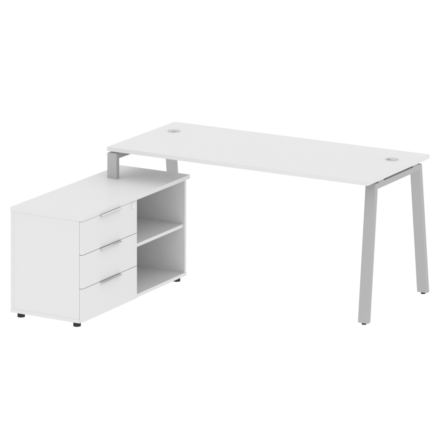 Metal System Р. ст. с тумбой на А-образном м/к БА.РС-СТС-2.4 (L) Белый/Серый металл 1700*1520*750