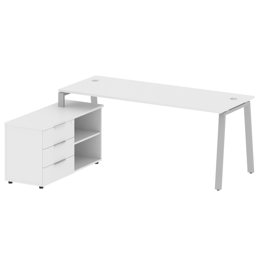 Metal System Р. ст. с тумбой на А-образном м/к БА.РС-СТС-2.5 (L) Белый/Серый металл 1900*1520*750