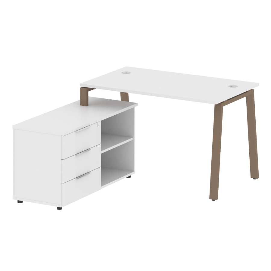 Metal System Р. ст. с тумбой на А-образном м/к БА.РС-СТС-2.2 (L) Белый/Мокко металл 1300*1520*750