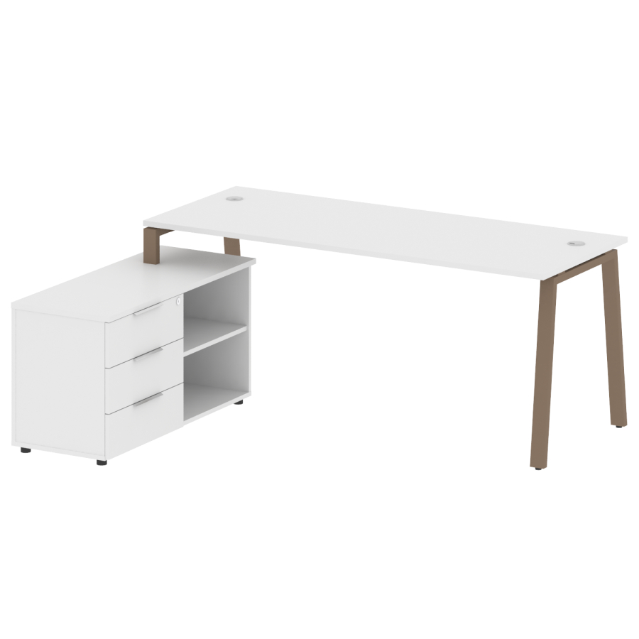 Metal System Р. ст. с тумбой на А-образном м/к БА.РС-СТС-2.5 (L) Белый/Мокко металл 1900*1520*750