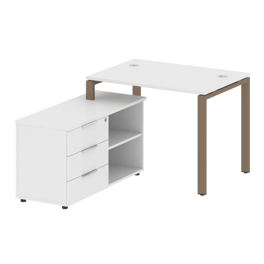 Metal System Р. ст. с тумбой на П-образном м/к БП.РС-СТС-2.1 (L) Белый/Мокко металл 1100*1520*750