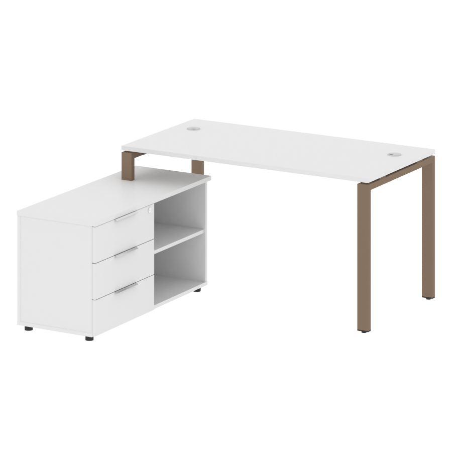 Metal System Р. ст. с тумбой на П-образном м/к БП.РС-СТС-2.3 (L) Белый/Мокко металл 1500*1520*750