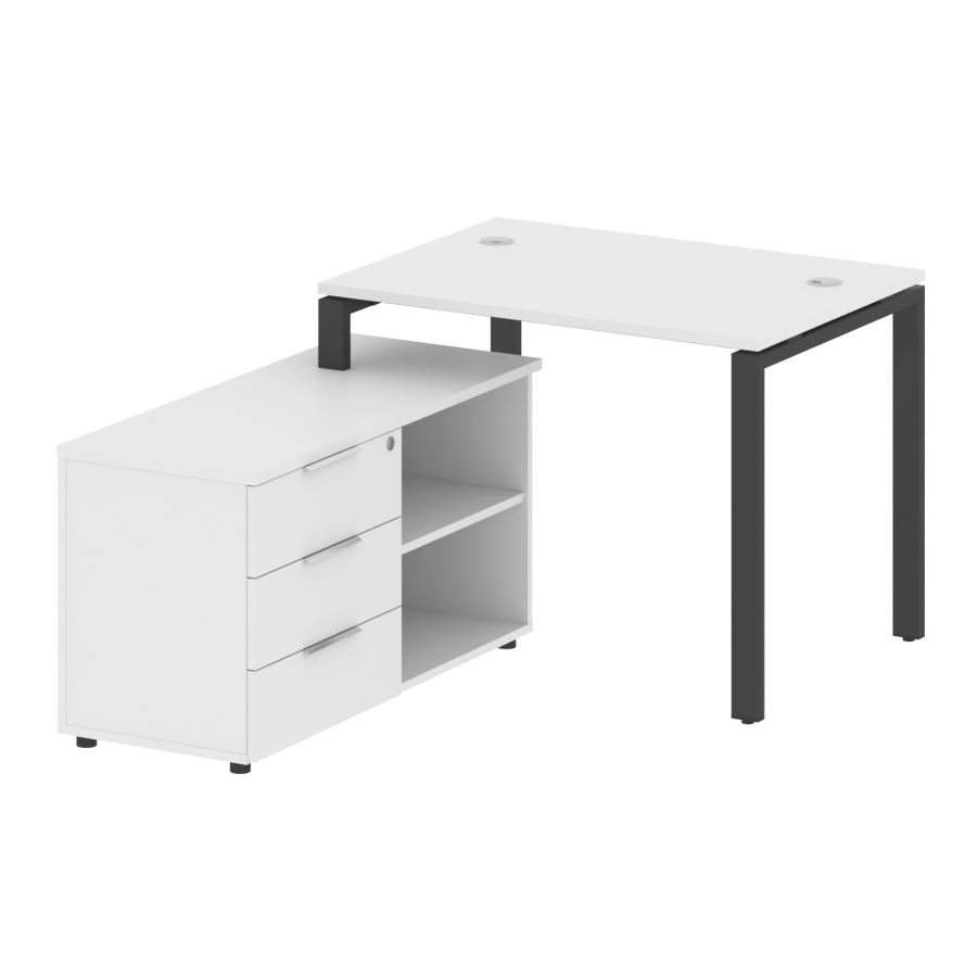 Metal System Р. ст. с тумбой на П-образном м/к БП.РС-СТС-2.1 (L) Белый/Антрацит металл 1100*1520*750