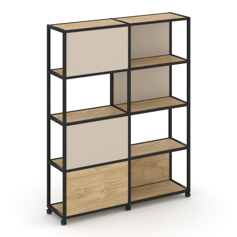 Shelf Mobile Стеллаж 5 уровней 2 секции VR.LT-STK-515.08 Тиквуд Светлый/Металл Черный/W-04 1570*400*2000