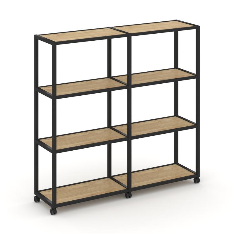 Shelf Mobile Стеллаж 4 уровня 2 секции VR.LT-STK-411.12 Тиквуд Светлый/Металл Черный 2370*400*1523