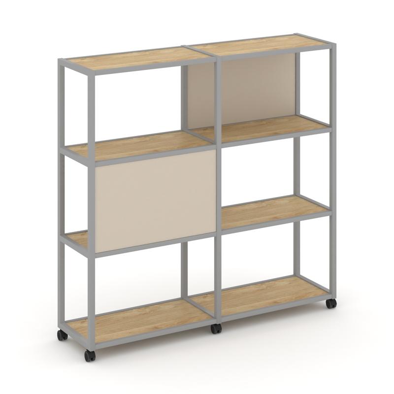 Shelf Mobile Стеллаж 4 уровня 2 секции VR.LT-STK-412.08 Тиквуд Светлый/Металл Серый/W-04 1570*400*1523