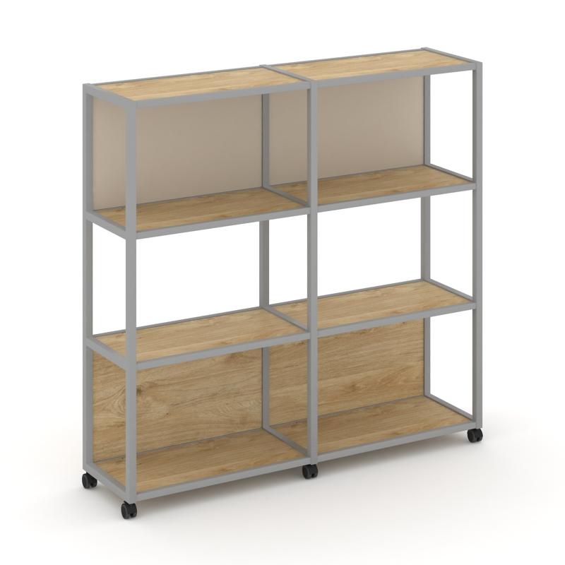 Shelf Mobile Стеллаж 4 уровня 2 секции VR.LT-STK-415.12 Тиквуд Светлый/Металл Серый/W-04 2370*400*1523