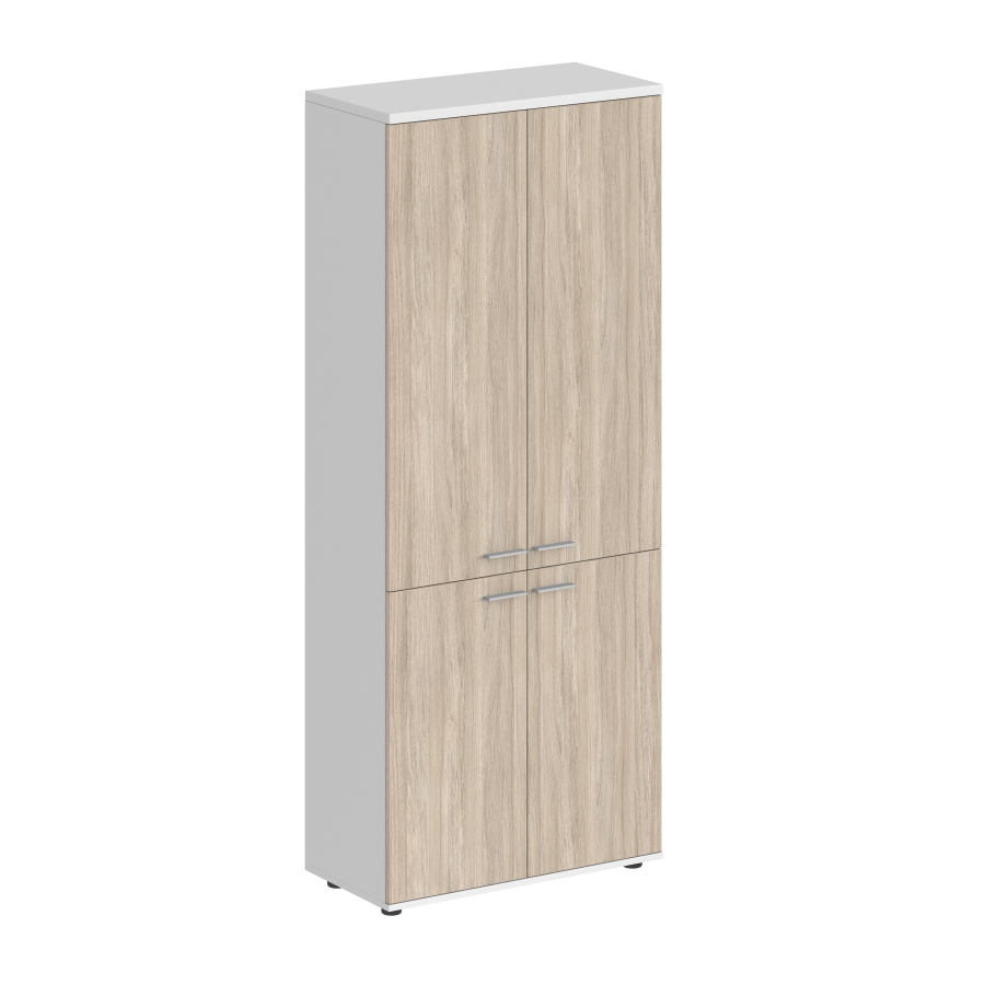Шкаф высокий Sigma 800х400х1955, 4-х дв, з.ст HDF / корпус: белый; фасады: дуб светлый