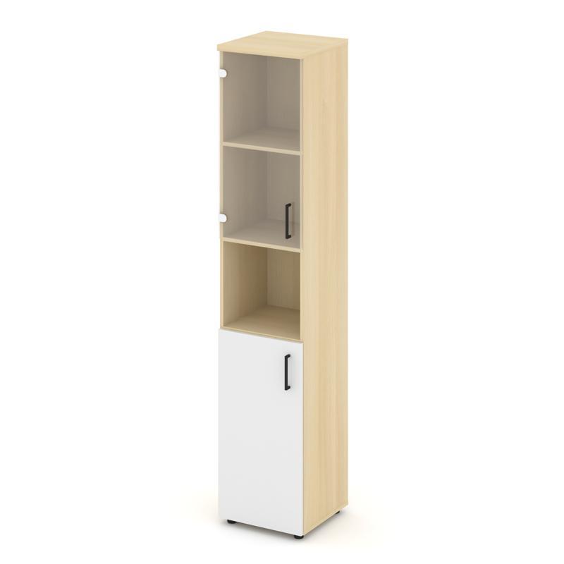 Style Project Шкаф высокий узкий SN.STU-105(L) Акация Лорка/Белый/Прозрачный/Черный Ручки 400*400*19