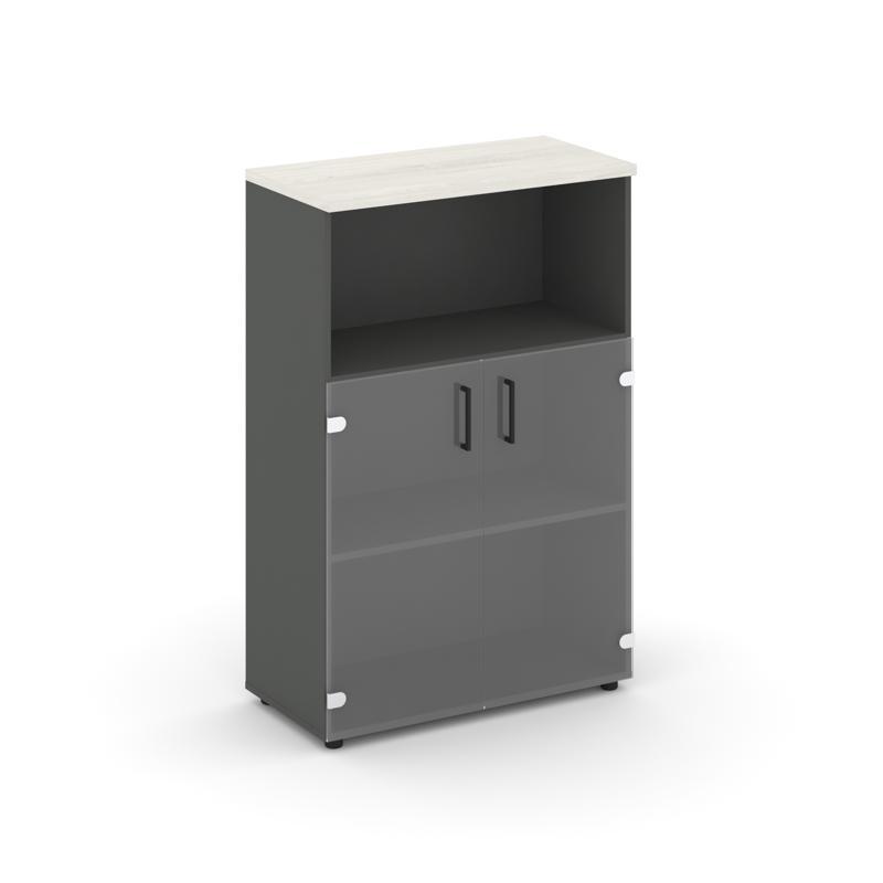 Style Project Шкаф средний широкий SN.STS.E-202 Антрацит/Дуб Наварра/Прозрачный/Черный Ручки 796*400