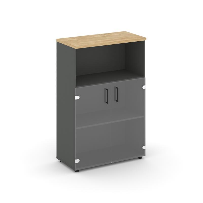 Style Project Шкаф средний широкий SN.STS.E-202 Антрацит/Тиквуд Светлый/Прозрачный/Черный Ручки 796*