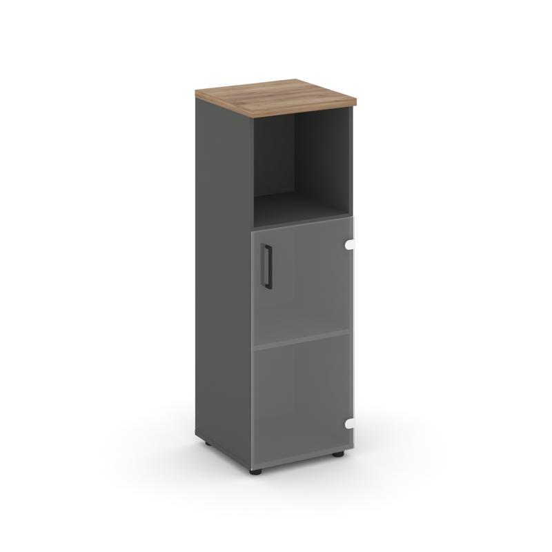 Style Project Шкаф средний узкий SN.STU-202(R) Антрацит/Дуб Табак/Прозрачный/Черный Ручки 400*400*12