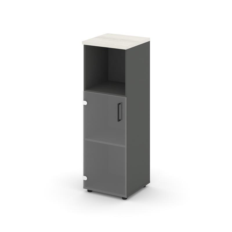 Style Project Шкаф средний узкий SN.STU.E-202(L) Антрацит/Дуб Наварра/Прозрачный/Черный Ручки 400*40