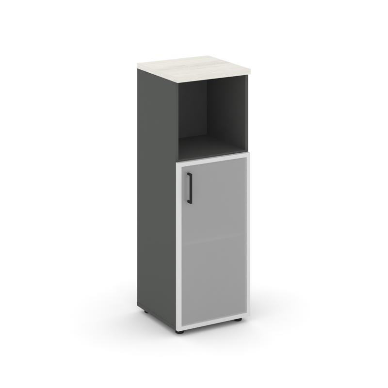 Style Project Шкаф средний узкий SN.STU.E-203(R) Антрацит/Дуб Наварра/Сатин/Черный Ручки 400*400*120