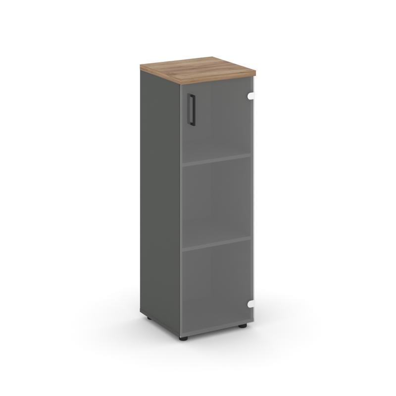 Style Project Шкаф средний узкий SN.STU.E-205(R) Антрацит/Дуб Табак/Прозрачный/Черный Ручки 400*400*