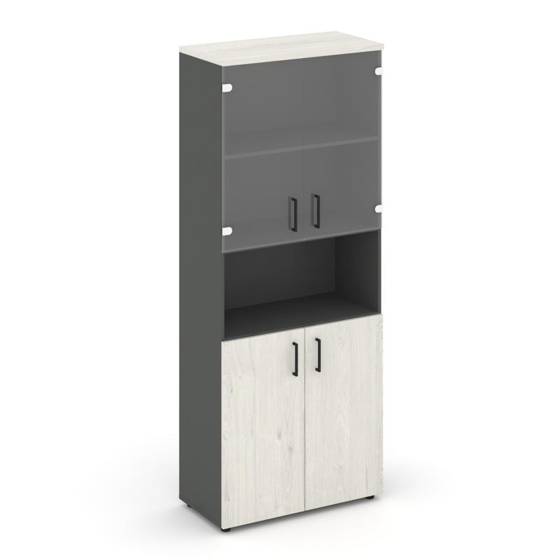 Style Project Шкаф высокий широкий SN.STS-105 Антрацит/Дуб Наварра/Прозрачный/Черный Ручки 796*400*1