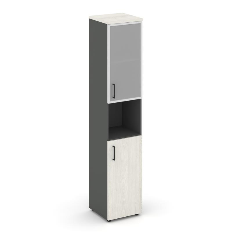 Style Project Шкаф высокий узкий SN.STU.E-106(R) Антрацит/Дуб Наварра/Сатин/Черный Ручки 400*400*198