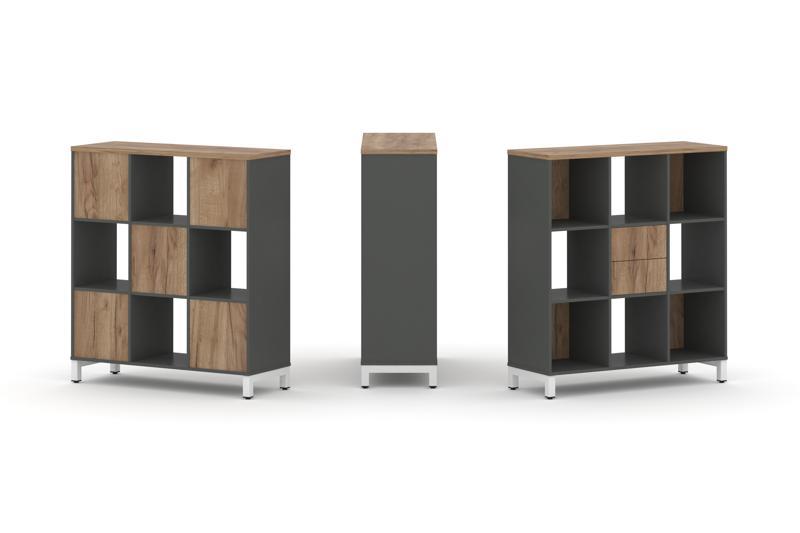Стайл Проджект Набор стеллажа 1 сторон., 3 яр. SN.NS-331 Антрацит/Дуб Табак/Металл Белый 1121*400*12