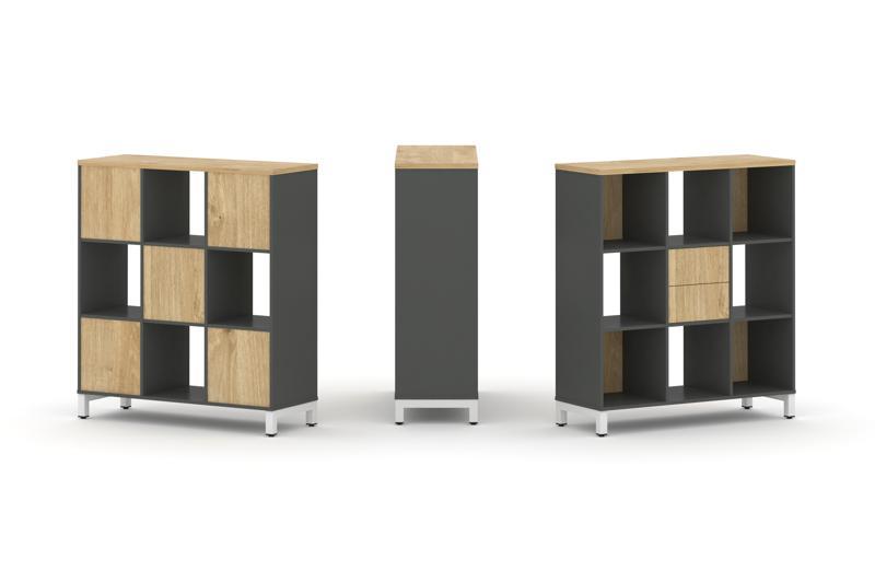 Стайл Проджект Набор стеллажа 1 сторон., 3 яр. SN.NS-331 Антрацит/Тиквуд Светлый/Металл Белый 1121*4