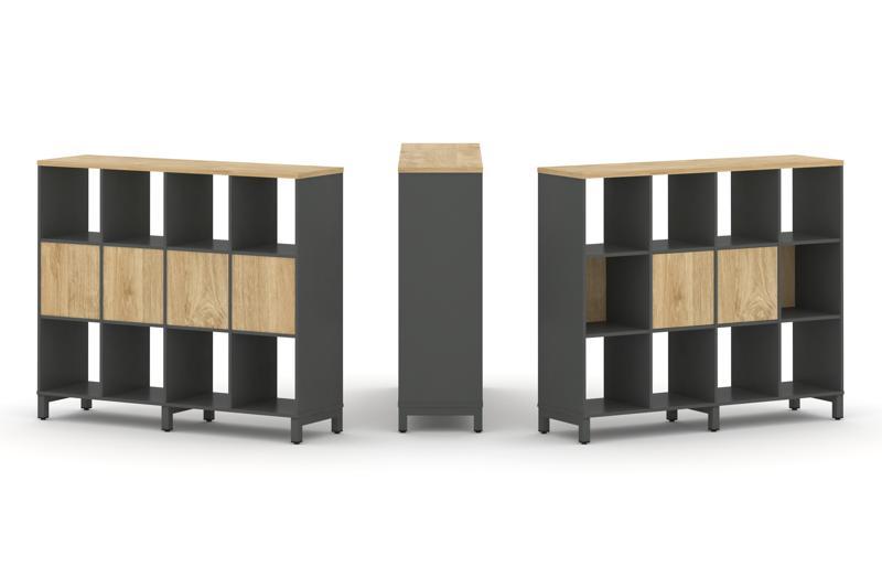 Стайл Проджект Набор стеллажа 1 сторон., 3 яр. SN.NS-341 Антрацит/Тиквуд Светлый/Металл Антрацит 148