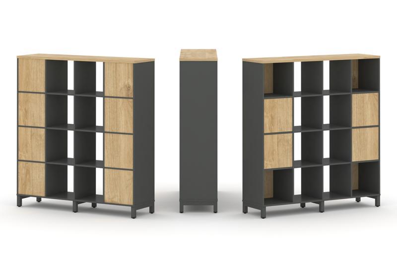 Стайл Проджект Набор стеллажа 1 сторон., 4 яр. SN.NS-441 Антрацит/Тиквуд Светлый/Металл Антрацит 148