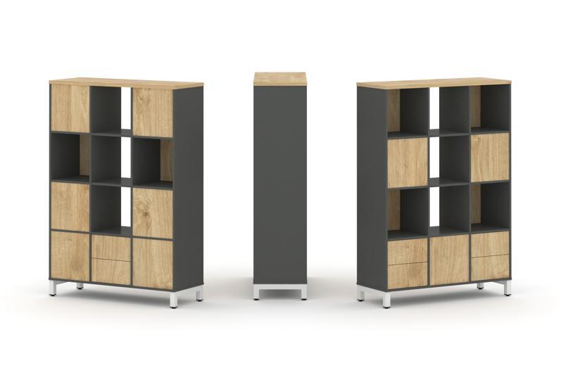 Стайл Проджект Набор стеллажа 2-х сторон., 4 яр. SN.NSD-431 Антрацит/Тиквуд Светлый/Металл Белый 112