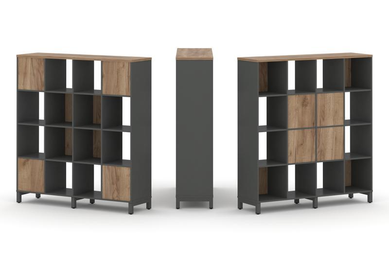 Стайл Проджект Набор стеллажа 2-х сторон., 4 яр. SN.NSD-441 Антрацит/Дуб Табак/Металл Антрацит 1488*