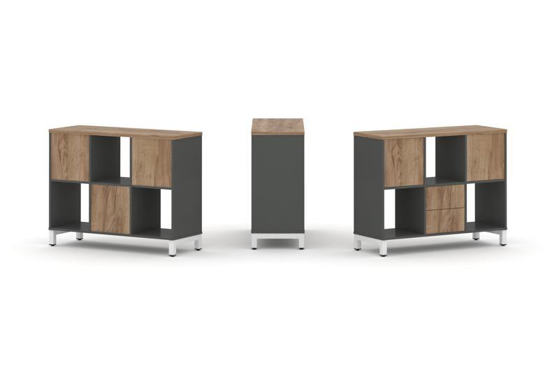 Style Project Набор стеллажа 1 сторон., 2 яр. SN.NS-231 Антрацит/Дуб Табак/Металл Белый 1121*400*881