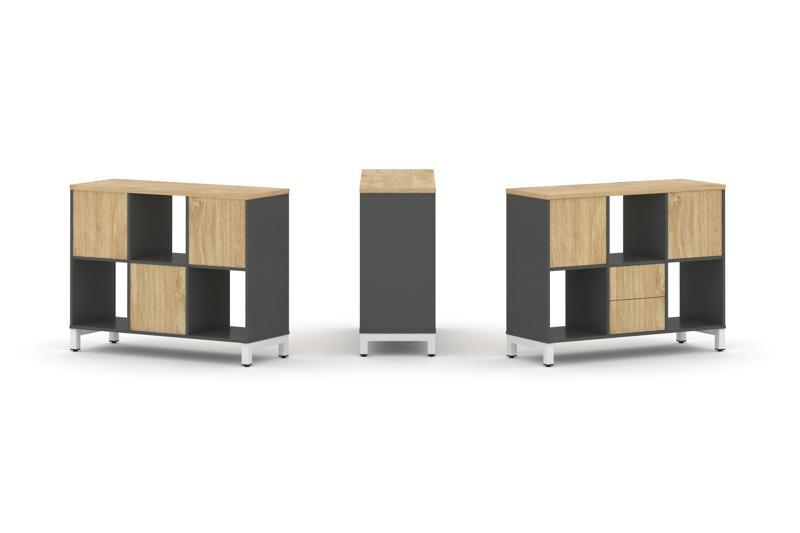 Style Project Набор стеллажа 1 сторон., 2 яр. SN.NS-231 Антрацит/Тиквуд Светлый/Металл Белый 1121*40