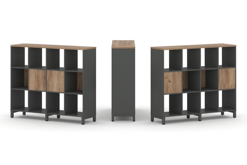 Style Project Набор стеллажа 2-х сторон., 3 яр. SN.NSD-341 Антрацит/Дуб Табак/Металл Антрацит 1488*4