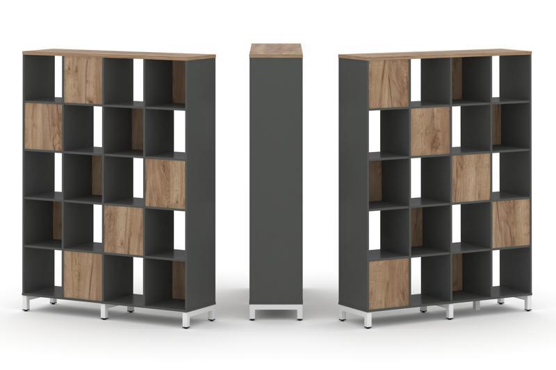 Style Project Набор стеллажа 2-х сторон., 5 яр. SN.NSD-541 Антрацит/Дуб Табак/Металл Белый 1488*400*
