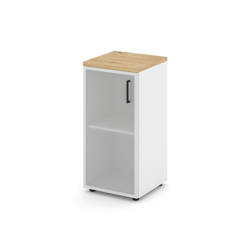 Style Project Шкаф низкий узкий SN.STU-303(L) Белый/Тиквуд Светлый/Сатин/Черный Ручки 400*400*833