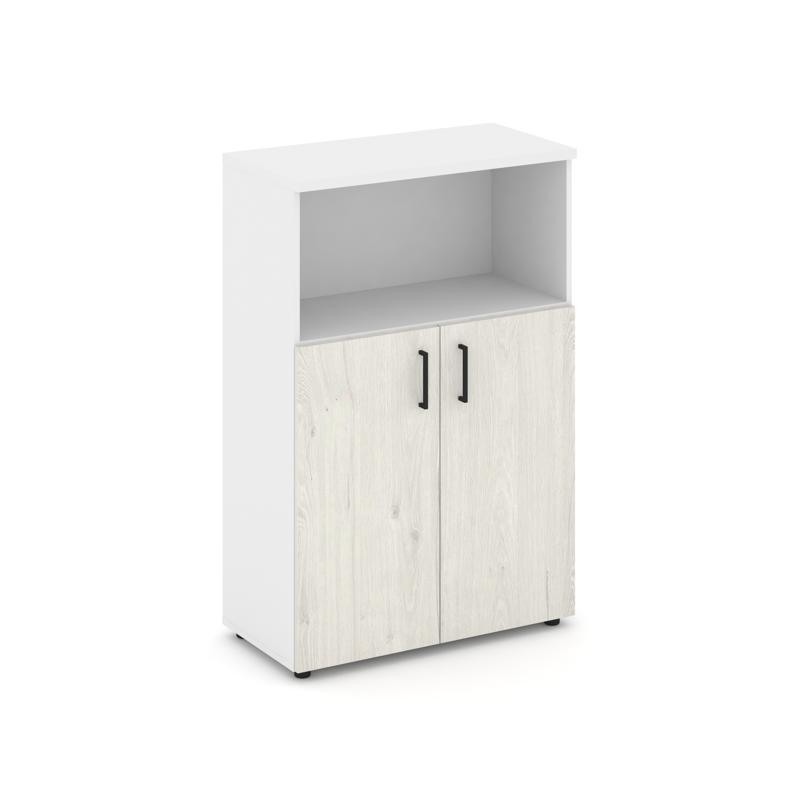 Style Project Шкаф средний широкий SN.STS-201 Белый/Белый/Дуб Наварра/Черный Ручки 796*400*1203