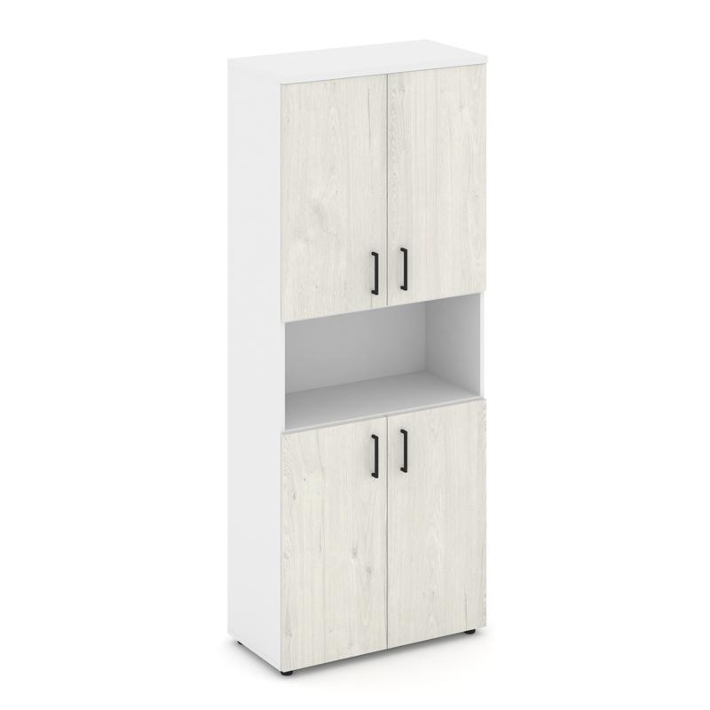 Style Project Шкаф высокий широкий SN.STS-107 Белый/Белый/Дуб Наварра/Черный Ручки 796*400*1982