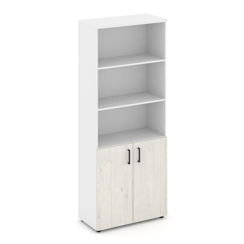 Style Project Шкаф высокий широкий SN.STS.E-101 Белый/Белый/Дуб Наварра/Черный Ручки 796*400*1982