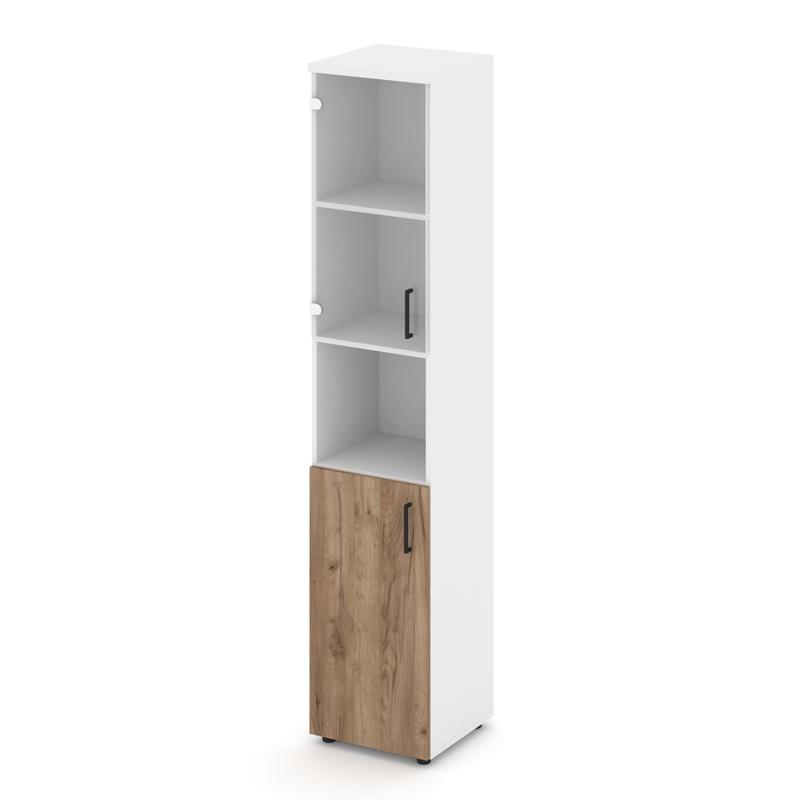 Style Project Шкаф высокий узкий левый SN.STU.E-105(L) Белый/Белый/Дуб Табак/Черный Ручки 400*400*19