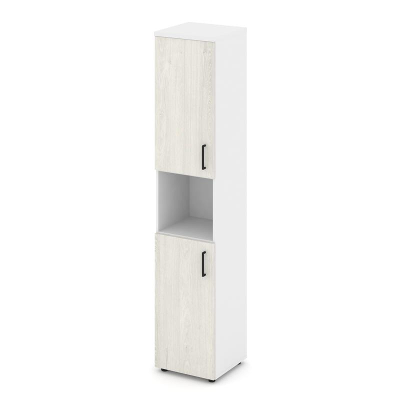 Style Project Шкаф высокий узкий левый SN.STU.E-107(L) Белый/Белый/Дуб Наварра/Черный Ручки 400*400*