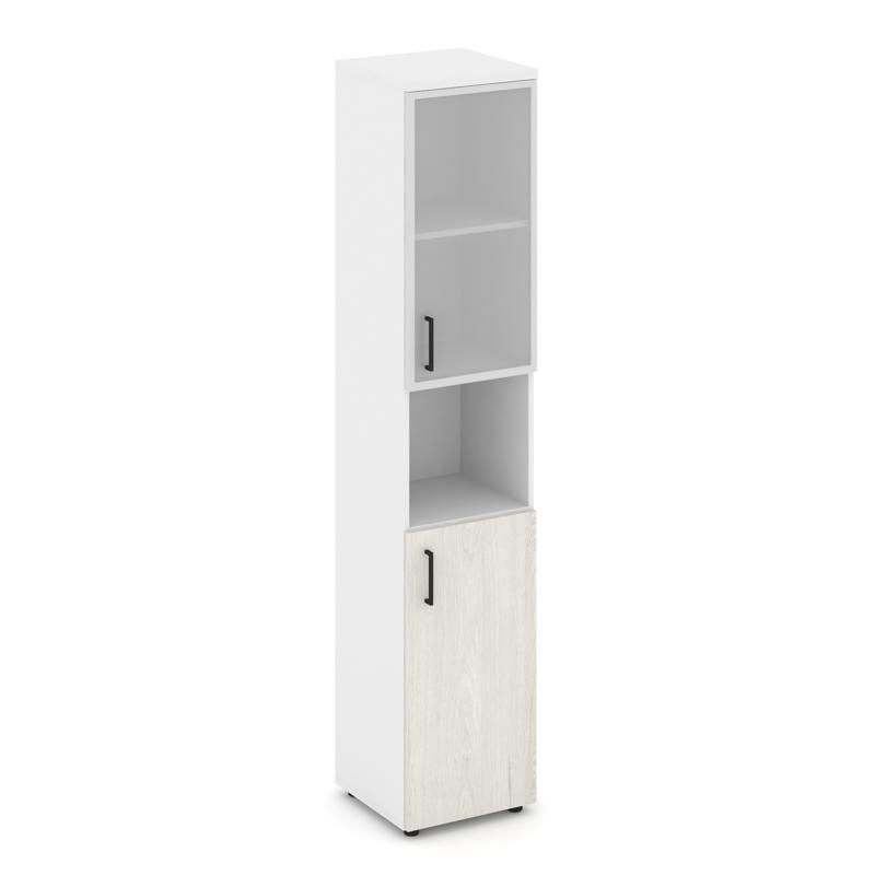Style Project Шкаф высокий узкий правый SN.STU-106(R) Белый/Белый/Дуб Наварра/Черный Ручки 400*400*1