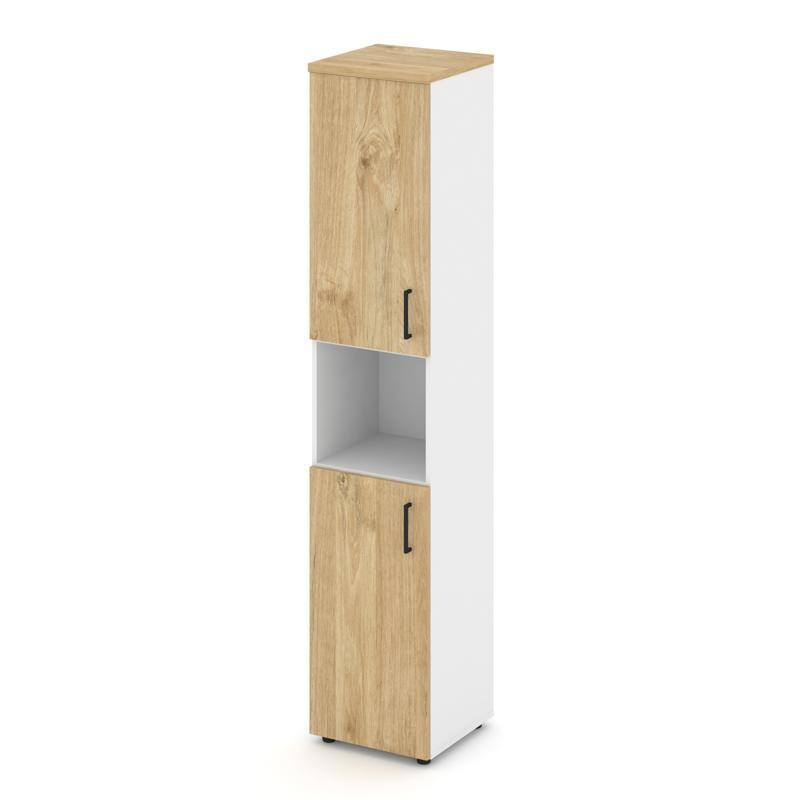 Style Project Шкаф высокий узкий SN.STU-107(L) Белый/Тиквуд Светлый/Черный Ручки 400*400*1982