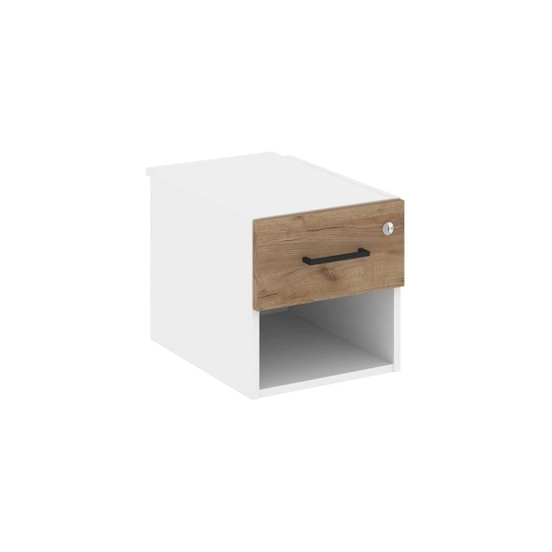 Стайл Проджект Тумба с 1 открытой нишей и 1 ящ. SN.TP-041 Белый/Белый/Дуб Табак/Черный Ручки 343*453