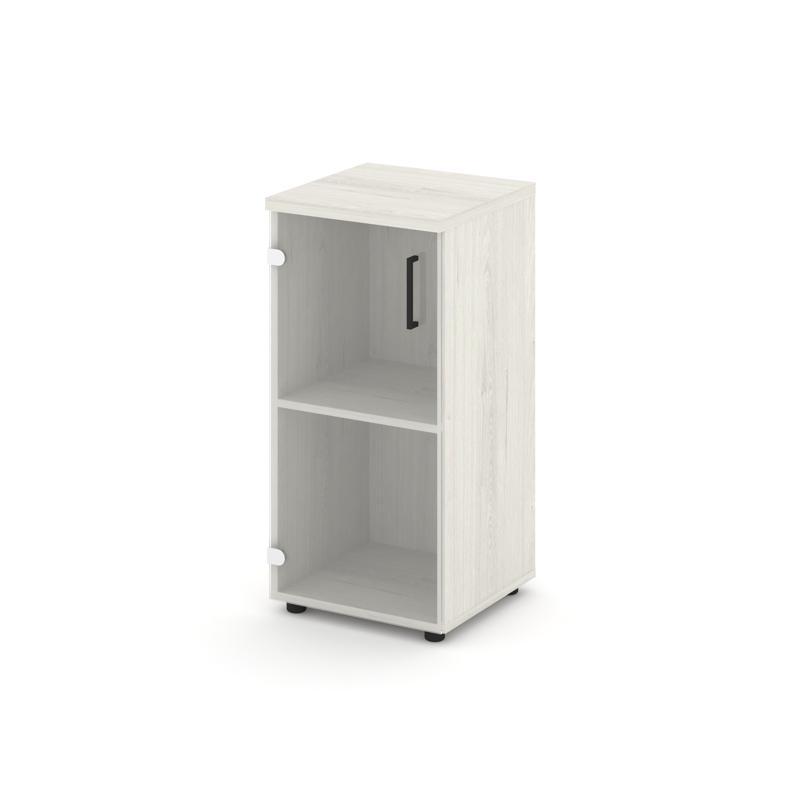 Стайл Проджект Шкаф низкий узкий SN.STU.E-302(L) Дуб Наварра/Прозрачный/Черный Ручки 400*400*833