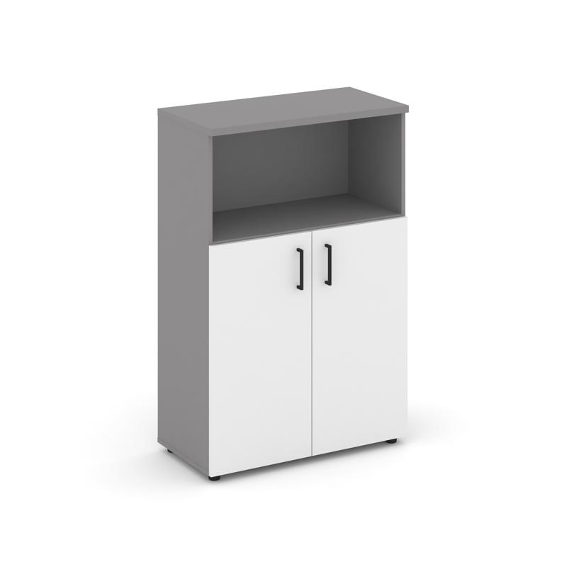Стайл Проджект Шкаф средний широкий (2 низких фасада ЛДСП) SN.STS-201 Серый Пепел/Белый/Черный Ручки