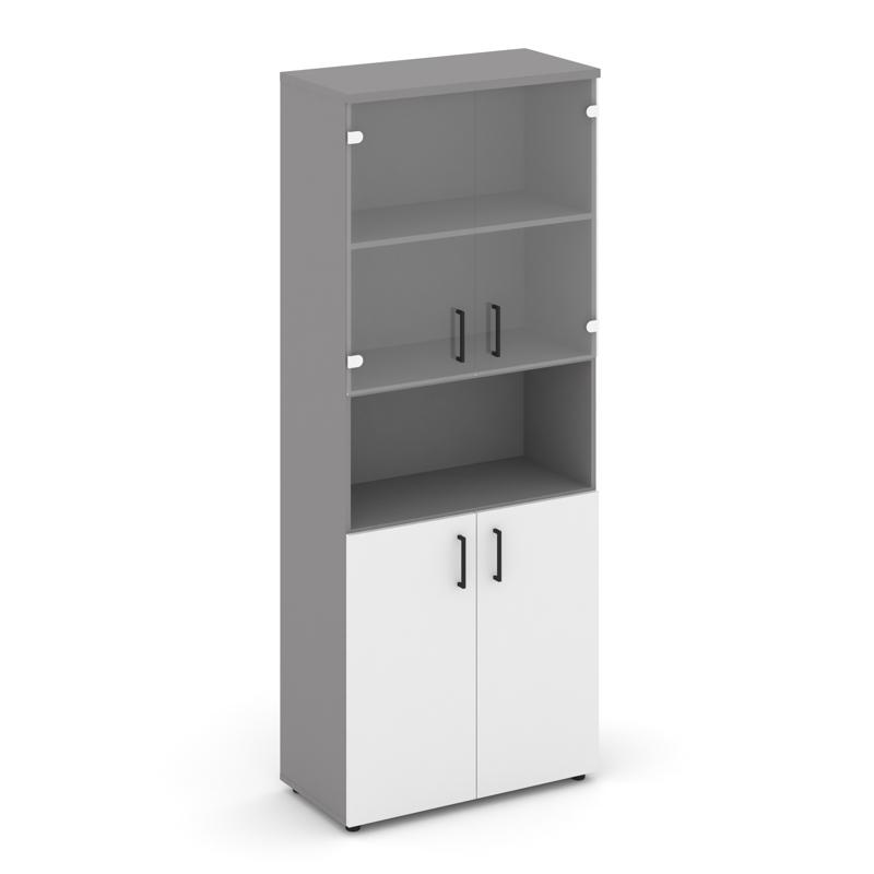 Стайл Проджект Шкаф высокий широкий (2 низких фасада ЛДСП + 2 низких фасада стекло прозрачное) SN.ST